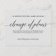 Designen har "förändring av planer" högst upp i svart kalligrafi-teckensnitt och två rader för anpassad text.