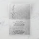 Vacker silver bröllopsdag inbjudan med en blomsterdamask bakgrund. Framområdet visar en elegant Calla Lily-kant och är redo att rama in din uppladdade bild som kommer att ersätta denna fotomall. Silver 25-årsjubileum textkonst och falskt glitter ger en perfekt accent. Anpassa den främre texten och baksidans textområden med din information.