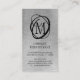 Modern affärskort för professionell av snyggt med ett dekorativt monogram av elegant eller inledande i svart mot en faux silver borstad bakgrund av folie av metall. Luxuriös svart och silver. ÄNDRINGAR: Ändra textteckensnittet stil, färg, storlek och placering genom att klicka på ANPASSA YTTERLIGARE under avsnittet PERSONALIZE. Kontakta designern via Zazzle-Chatta eller makeitaboutyoustore@gmail.com om du vill att designen ska ändras, på en annan produkt eller om du vill samordna produkter.