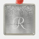 Silver Brushed Metall Glitter Monogram Namn Julgransprydnad Metall