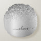 Silver Brushed Metall Monogram Namn Girly Rund Kudde