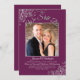 Den här vackra inbjudan till festen för förnyelse av löv/årsdag har en enkel utformning av eleganten med ditt foto på bakgrunden för lila, magenta eller bärgning av färgaden. Rubriken lyder "Vi gör fortfarande" i finare, skript som skriver ut med silver grått blommigt-kylskåp i hörnen. Baksidan har en liten lacy dekoration med namn och bröllop-datumet inuti. Perfekt till inbjudan för att fira med dig.