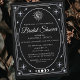 Lägg till en touch av magi till din bröllopsfest! Denna inbjudan har en tarot-inspirerad design med en elegant oval ram, en strålande sol och måne i silver mot en svart bakgrund. Perfekt för en fest som är lika förtrollande som bruden! OBS: Designen på denna inbjudan är INTE ÄKTET FOLIE och är tryckt i platta färger.
