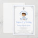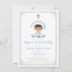 Lägg till en touch av tradition och charm på din speciella dag med vår söta Charro-dop- och födelsedagsinbjudan. Perfekt för dubbla firanden, denna eleganta inbjudan visar en söt baby charro iklädd en babyblå traditionell dräkt. Designen kompletteras vackert av ett delikat silverkors och en raffinerad silverkant, allt mot en krispig vit bakgrund. Denna inbjudan fångar essensen av kulturellt arv med en modern twist, och ger en sofistikerad men lekfull touch. Fullt anpassningsbar, så att du kan anpassa varje detalj för att passa din unika händelse. Bjud in dina gäster med denna högkvalitativa, stilfulla design och skapa oförglömliga minnen som firar både dop och födelsedag med grace och elegans.