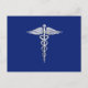 Silver Chrome Caduceus Medical Symbol på marinblåt Vykort