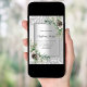Faux silver tittar bakgrund som dekorerats med konerna gräs träd, vita bär, grönt löv, faux silver glitter, gnistor. Anpassa och lägg till information om party. Black brev.