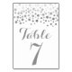 Lägg till lite gnistra och skina på bröllopsmottagningen med de här elegant bordsnumren. De här korten skapar ett modernt utseende och chic med en kaskad av skuggande konfektyrer från silver mot en skarp vit bakgrund. Anpassa enkelt till bordsnumren för att skapa en sammanhängande och oförglömlig inställning till bord.