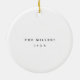 Ett festivt prydnadsämne med cirkulärt silver som överlappar konetti ring med vitt gräns och kundfoto på framsidan. Baksidan har ett textområde som omfattar namn och år. Det här är perfekt för ge presentsäsong eller för att lägga till en minnesstund till ditt eget träd. Underbar för nyfödda, nyfödda, studenter, barn, familjer och husdjur.