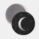 Silver, metallliknande utseende, crescerande måne mot bakgrund av en stjärnmörk himlar