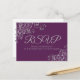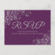 De här vackra vykorten för OSA gör det enkelt för dina gäster att svara på din bröllopsinbjudan med antingen nummer och måltider, eller att skicka sina beklaganden. Utformningen är enkel men elegant med silver grått-text och en lacy silver faux foil blommigt filigree gräns på plommons lila-bakgrund.