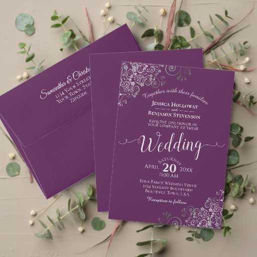 Fancy Plum Purple & Silver Elegant Wedding SuiteDesignad av Cat Ritchie