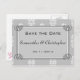 I elegant sparar personligt bröllp vykortet date postcard i grått och silver, som är en del av "Silver Damask"-uppsättningen med bröllop-papper med ett grått- och vitt dammmönster med silver ornament.
