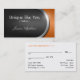 Möte kort med unik mörk - grått- & orange- och silverdesignen betonar. Personlig med affärernas namn & information och specialistens namn. Perfekt för någon trendig, möte inställningsaffär.