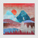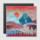 Ett vackert landskap i abstrakten med berg- och skogsscenen och en örnlandning på träd i klara skuggor av blått, cyan, silver och krimson.