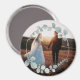 En silverfärgad eukalyptusdesign pryder denna personliga foto-magnet. Designen är en del av en stor brölloppskollektion.