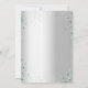 Faux silver tittar bakgrund som dekorerats med eukalyptus grenery, guldblad och silver och grönt faux glitter, gnistor. Anpassa och lägg till information om namn och bröllop. Black brev.
