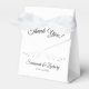 Tack för att ni föredrar boxar är perfekten för att tacka ledamöterna i er bröllopsfest för att de deltar i er speciella dag. Fyll med godis, bröllopsfavörer eller gåvor. Designade som en del av vår Silver Foil Bröllop Suite har de en enkel men elegant design av svart text på vit bakgrund med en faux foil blommigt gräns. Fullständigt anpassade så att du kan ange den information du behöver.