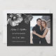 This Save the date card features silver gray flowers on a black background.