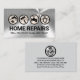 En faux-folie i silver har en uppsättning av ikondesign för silver handyman verktyg. Verktyg kan representera vissa av de tjänster som du kan erbjuda, t.ex. kan borllmätningsbandet representera hemanpassning, pensel för målningstjänster osv. Bara under ikonerna finns namn och dess kontaktuppgifter som du kan ändra. I ett lätt grått-hölje finns en logotyp i silver som du kan använda på överkanten. Lampan kan aldrig innebära att expertuppdragstagarens idéer förbättras. Detta följs av ditt prestigefyllda namn, kontaktuppgifter och ett sloganbildsalternativ som du kan ändra. En underbar utformning för företag som förbättrar hemmet till använda. #handyman #constuctionhandyman #homerepairentreprenör #building #building #remodeling #handymanTools #buildentreprenader #homerepair #interiordesign #zazzlemade