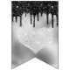 Elegant silver foil mönster med svart droppformad glitter och diamanthjärna