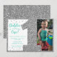 Silver Första Födelsedagsinbjudan, Falskt Glitter Inbjudningar