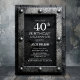 Silver Frame Black Slate 40th Birthday Party Inbjudningar