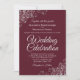 Den vackra bröllopsinbjudan är snyggt, enkel och elegant. Den har silver-grått-skriptbokstäver av blek på en burgundisk, maronröd eller vin-röd färgad med fotfiltret i silver i varje hörn. Den understrukna utformningen kompenseras av konstverkets normala kylfrys och virvlar. På baksidan finns anpassadet QR-kod och detaljinformation så att du kan skicka gästerna till en webbplats för information och OSA.