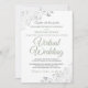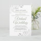 Bara för att du har tvingats flytta bröllop till en virtuell ceremoni, kan du inte skicka vackra inbjudningar till elaket. Den här eleganten inbjudan har grönt för finare och grått-skriptbokstäver på en vit bakgrund med filtret för lacy silver faux-folie eller blommigtar och snurrar i hörnen. Perfekt till inbjudan dina vänner och din familj till på din speciella dag, även om de inte kan vara där personligen.