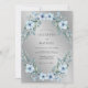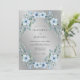 En sval silverbakgrund ger en skimrande bas för denna eteriska design. Ömtåliga blekblå anemoneblommor och isgröna eukalyptusblad skapar ett mjukt botaniskt arrangemang. Paletten frammanar en frostig atmosfär och blandar metalliska toner med eleganta akvarellblommor.