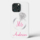 Elegant och praktiskt iphone case tryckt med en silver och glitter diamant ring med ord "fru" i rosa text. Lägg till ditt meddelande eller namn.