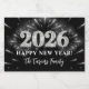 Silver Glitter Black Happy New Year 2026 Sparkling Wine Label