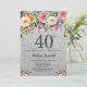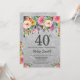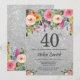 Silver Glitter Blommig 40-års Födelsedagsinbjudan Inbjudningar
