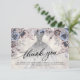 Modern blomster-Quinceañera tackkort. Design med silverklänning, blomsterdekorationer på en ljus pärlbakgrund. Anpassa med ditt namn och tackmeddelande.