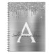 Silver Falsk Folie Metallisk Glitter Borstad Metall Monogramnamn och Initial Spiral Anteckningsbok. Detta gör den perfekta söta 16-årsdag, bröllop, bröllopsdusch, årsdag, baby shower eller möhippa present för någon som älskar glamour lyx och chic stilar.