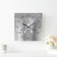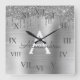 Silver Glitter, borstat Metall Monogram Namn Fyrkantig Klocka