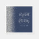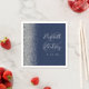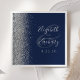 Den lämnat kant i denna elegant moderna bröllop-servetter har en silver faux glitter-design. Med anpassadet kombineras handskrift av silver grått och typsnitt på en stor yta på en marin blå bakgrund.