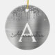 Silver Glitter Brushed Metall Monogram Namn Julgransprydnad Keramik