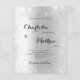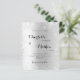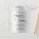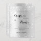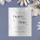 En modern, elegant och minimalistisk bröllopsinbjudan. Falskt silverfärgad bakgrund dekorerad med falskt glitter. Anpassa och lägg till era namn och detaljer. Svarta bokstäver.