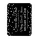 Elegant bröllop "Spara datum"-design med Silver Faux Glitter Confetti Black och anpassade namn och datumtext.