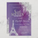 Silver Glitter Drips Eiffel Torn Violet Sweet 16 Inbjudningar