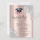 Silver Glitter Drips Floral Grad Cap Rose Gold Inbjudningar