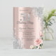 En modern, chic och glamourös med silverglitterdropp, rosor på en rose gold-bakgrund.