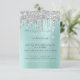 Silver Glitter Drips Silver Aqua Bröllop Sweet 16 Inbjudningar
