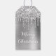 Skapa dina egna God jul-presentmärkre. Girly faux sparkly silver glitter över en faux silvery grått- borstad metall stil ombre-folie. Anpassa teckensnittet stilar för att skapa din egen textdesign för hennes speciella firande.