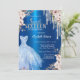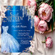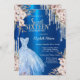 Elegant blå klänning och silver glitter och blommor på metallblå bakgrund.