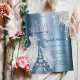 Elegantens blå klänning, blå diamanter Eiffel torn och silver glitter droppar i en blå metallbakgrund.