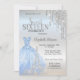 Elegant blå klänning, Eiffel torn och silver glitter droppar mot silver.