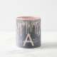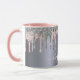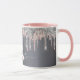 Ett giggt och trendig monogrammat mugg. En chic faux silver tittar bakgrund som dekoreras med rosa och faux silver glitter drops, färgdroppstift. Anpassa och lägga till namn och monogram brev. Vit och rosa färgad brev. Namn är skrivet med ett modernt handskript i stil med dekorationer. Om du bara vill behålla utslagen tar du bort exemplet namn lämnar du blankstegen eller symbolerna framför och efter namn.
