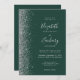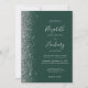 Den här elegantens lämnat kant har en modern bröllopsinbjudan i silver i glitter. Med anpassadet kombineras handskrift av silver grått, tryckplåt och kursivt typsnitt på en bakgrundsbild av grönten. På baksidan finns utrymme för information om bröllop på en solid grönt-bakgrundsbild, tillsammans med en QR-kodsgäst som kan söka på din webbplats och OSA, vilket sparar kostnaderna för utskrift och utskick av separat OSA kort.