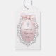 Silver Glitter Frame Pink Bow Baptism Presentetikett